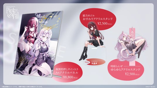 キービジュアルを使用した「A4アクリルパネル(複製箔押しサイン入り)」や「蜜乃木ジル おすわりアクリルスタンド」、「時庭らんぜ ゆらゆらアクリルスタンド」を数量限定で販売中です。