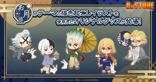 キャラクターと伝統文化の融合をテーマにしたブランド「キャラディショナルトイ」より、TVアニメ「Dr.STONE」のキャラクターたちを新規で描き起こした「お月見」モチーフの商品を発売します。