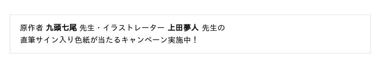 ・九頭七尾(原作者)、上田夢人先生(イラストレーター)、名苗秋緒先生(漫画家)のお祝いコメント
