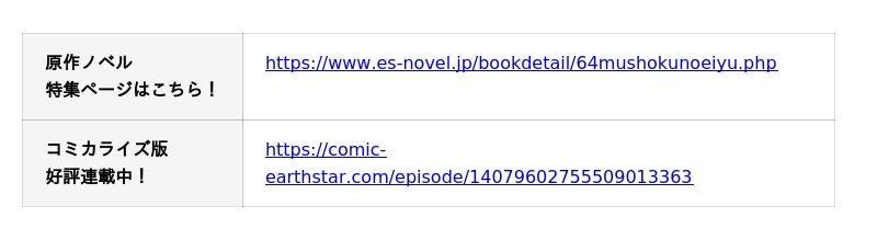 コミック アース・スター:https://comic-earthstar.com/ (毎週木曜18時更新・毎月12日発売)アース・スターノベル:https://www.es-novel.jp/ (毎月15日発売)