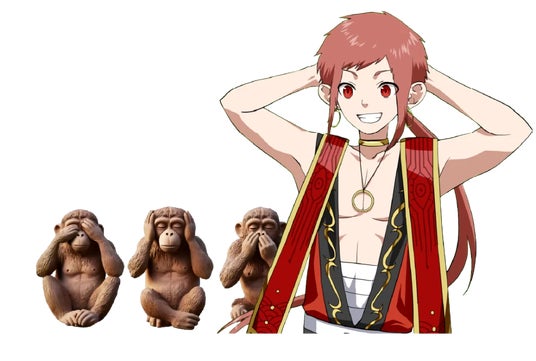 カカ12支族の猿族、好奇心旺盛で社交的。特殊能力「見ざる言わざる聞かざる」を用いて常人では見えない、言えない、聞こえないものを感じることができる。生業は、もちまえの社交性を活かした居候。