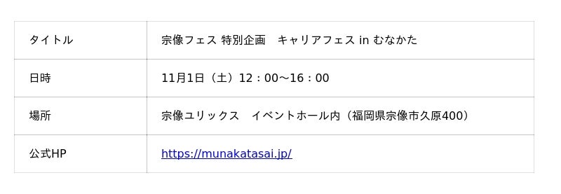 宗像フェス 学生向け特別企画 キャリアフェス in むなかた