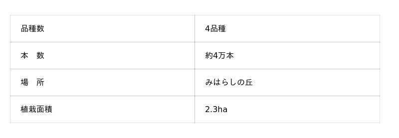 みはらしの丘には、観賞用の品種「ルージュ」をメインに植栽しています。自然と丸々とした草姿に成長し、季節の移ろいとともに、色合いが変化していくのが魅力です。コキアの色合いは、秋の深まりとともに緑と赤のグラデーション、紅葉から赤と茶のグラデーションへと変化していきます。