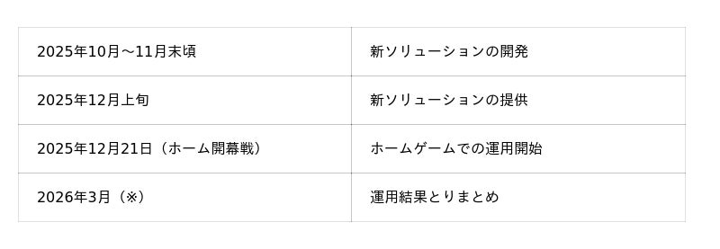 (※)運用結果とりまとめ以降のホームゲームにおいても提供予定です