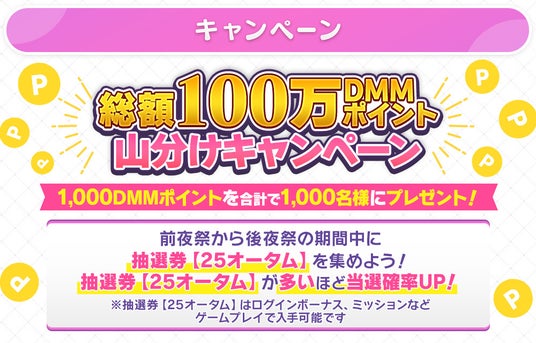 抽選券【25オータム】を所持している方から抽選で1,000DMMポイントをプレゼント。