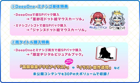 さらに!「限定ドット絵マウスカーソル」と、両タイトル購入特典として「限定デジタルビジュアルブック」もおまけとしてプレゼント!!