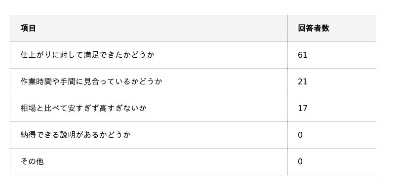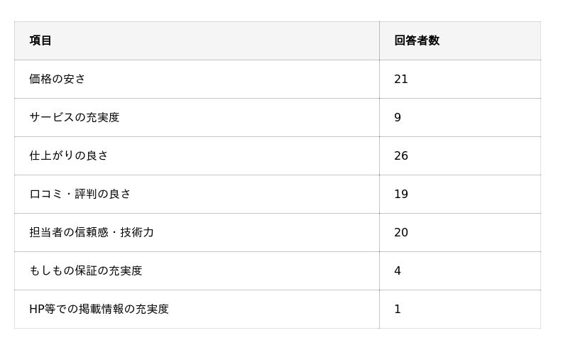 エアコンクリーニング選びにおける以下の基準の中で、最も重視するものは何ですか?