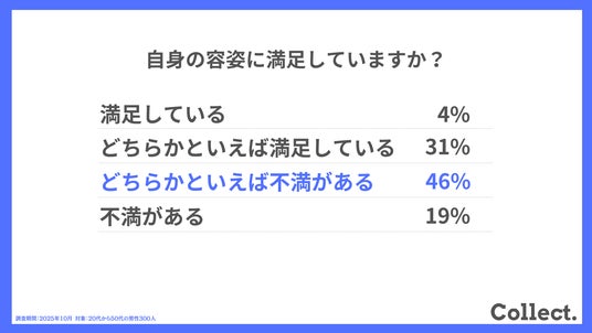 ディーエムソリューションズ株式会社(東証スタンダード上場)が運営するメディア「Collect.(コレクト)」では、男性300人に容姿の満足度に関するアンケート調査を実施しました。
