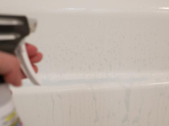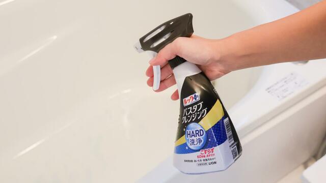 使い方は、浴槽に向かってシューっとまんべんなくかけてから、60秒放置後にシャワーで流すだけ。