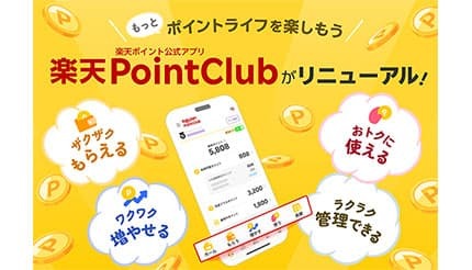 楽天グループは10月9日に、「楽天ポイント」の獲得や利用状況などを確認できる「楽天ポイント」公式アプリ「楽天PointClub」を、リニューアルしたことを発表した。