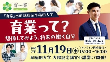 このたび、学校法人早稲田大学とともに「育業って?想像してみよう、将来の働く自分」をテーマに大学生等を対象とした「育業」出前講座を実施いたしますのでお知らせします。