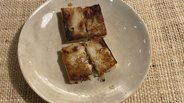 今夜は「飛雁閣」の大根餅とシュウマイを食べます。