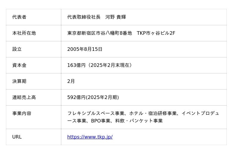 【株式会社ティーケーピー 会社概要】
