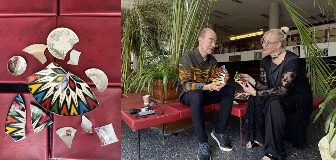 さらにキーウ在住の写真家・マルチメディアアーティストVera Blansh氏の協力のもと、爆撃を受けた市内の集合住宅を訪れ、爆発によって破壊された食器の破片を回収し、キャンベル氏にその破片を日本に持ち帰ってもらえるよう託しました。