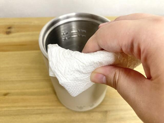 油汚れが気になるときは、内側の汚れをキッチンペーパーで拭き取ったあとに、薄めた台所用中性洗剤を含ませたスポンジで洗えばきれいになります。