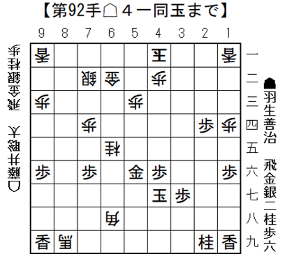 ▲4一銀成 △同 玉 まで92手で後手の勝ち
