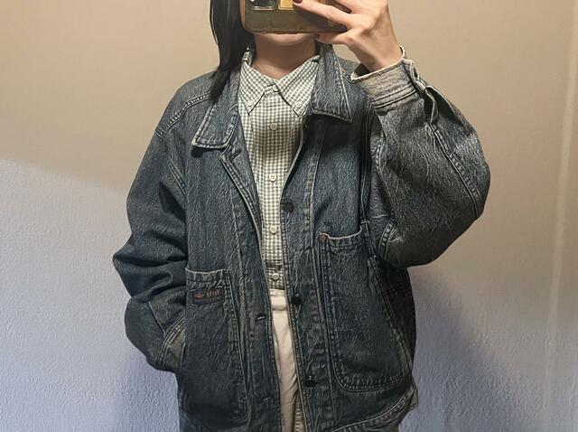 この日はまだ寒かったのでインナーとして着用し、Gジャンと白パンツと合わせてみました。このようなメンズライクの服装にも合うんですよね〜。