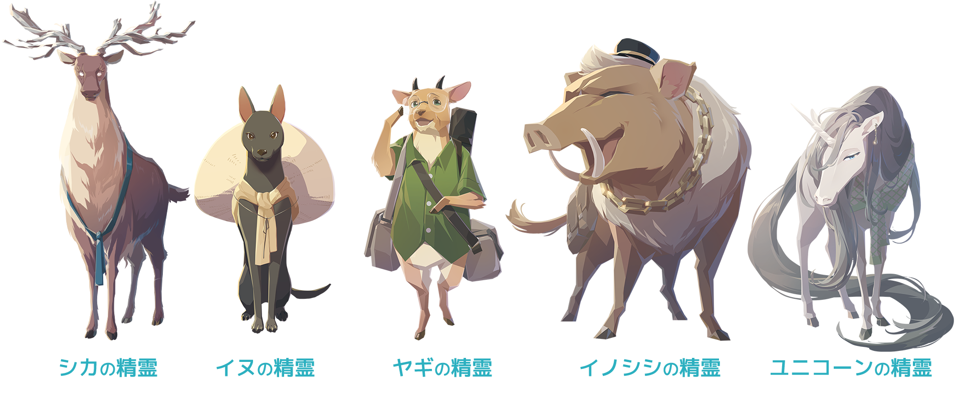 旅の途中で出会う動物の姿をした「神霊」。彼らと交流する中で、ボウの地についてや、帰り道への手がかりを得ていく。