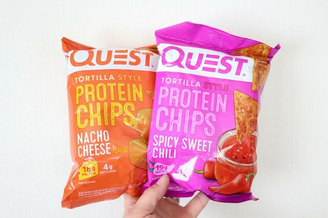 最近は、Quest Nutrition(クエストニュートリション)の「トルティーヤスタイル プロテインチップス」なども食べています。