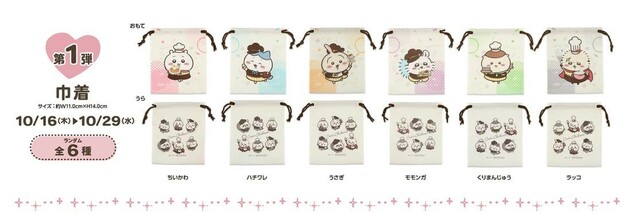 10月29日(水)までの第1弾では「巾着」、10月30日(木)~11月12日(水)の第2弾では「ミニタオル」、11月13日(木)~11月26日(水)の第3弾では「スライドケース」、11月27日(木)~12月10日(水)までは「ソフビ人形」と、期間によってグッズが変わります。