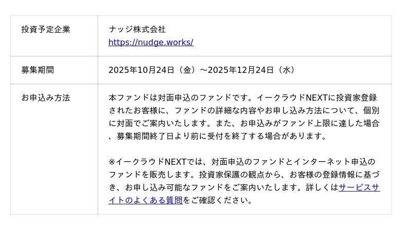ナッジ イークラウドNEXT匿名組合ファンドの募集概要