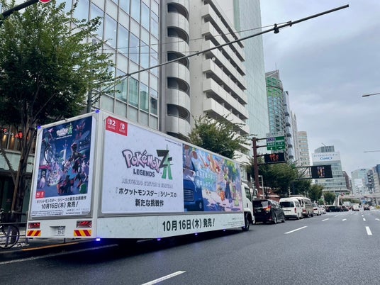 オフラインマーケティング事業を展開するohpner株式会社(東京都渋谷区、代表取締役:土井 健)は、株式会社ポケモン(東京都港区、代表取締役社長:石原恒和)が10月16日に発売する『ポケットモンスター』シリーズ最新作『Pokemon LEGENDS Z-A(ゼットエー)』のモビリティ広告掲出を担当いたしました。「昼」と「夜」をテーマに異なるクリエイティブを左右に掲出したトラックが、10月1日より東京、大阪にて走行を開始しております。