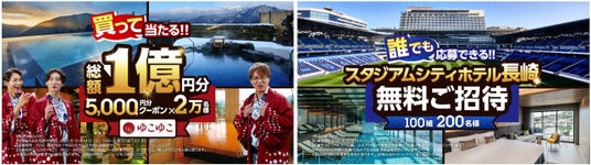 株式会社ジャパネットたかた (本社:長崎県佐世保市/代表取締役社長:高田旭人)は、2025年10月14日(火)より「第27回 ジャパネット利益還元祭」を開催いたします。利益還元祭は、ジャパネットが1年間のご愛顧への感謝の気持ちをお届けするキャンペーンで、お客様にご好評の商品をラインナップし還元祭特価で販売します。さらに、2つの懸賞企画をご用意。全国の温泉宿のご宿泊にご利用いただける総額1億円の「ゆこゆこ」クーポンのプレゼントと、スタジアムシティホテル長崎へ100組200名を無料ご招待。ご購入いただいた方はもちろん、誰でもご応募いただける企画として展開いたします。