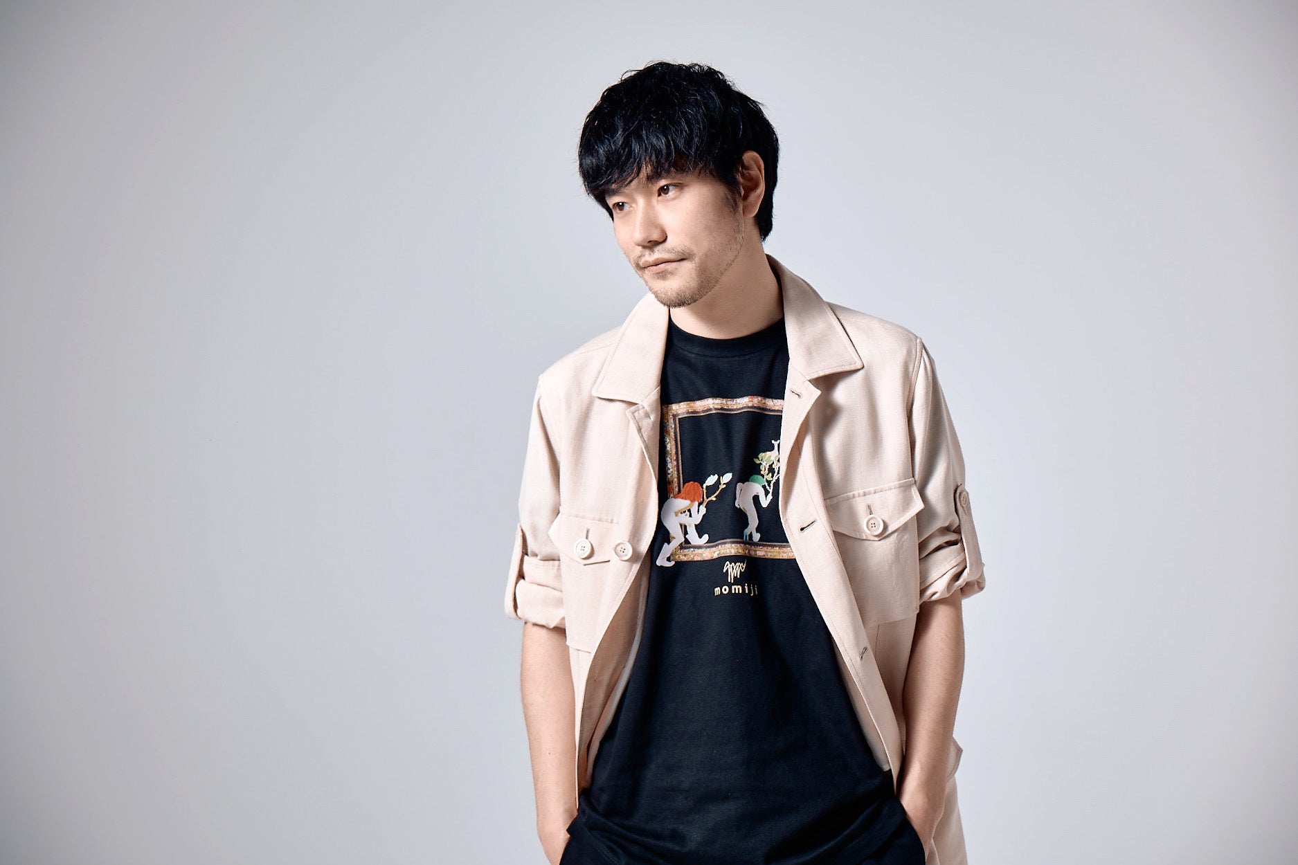 <松山ケンイチ:momiji代表。俳優・デザイナー。今回のコレクションでアイテム制作・監修全般を行う。写真は松山さん自身がデザイン・加工したTシャツを着用>