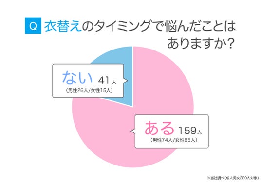 成人男女200人に「衣替えのタイミングで悩んだことはありますか?」と質問したところ、159人が「はい」と回答しました。