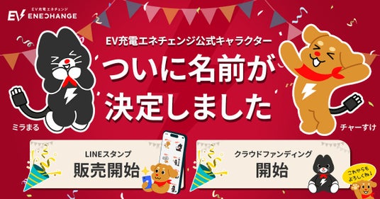 ミライズエネチェンジ株式会社(本社:東京都中央区、代表取締役社長:柘野 善隆、以下「ミライズエネチェンジ」)は、全国から2,127件もの多くの応募をいただき、厳正なる選考の結果、「EV充電エネチェンジ」の公式キャラクターの名前を「チャーすけ」および「ミラまる」に決定したことをお知らせいたします。