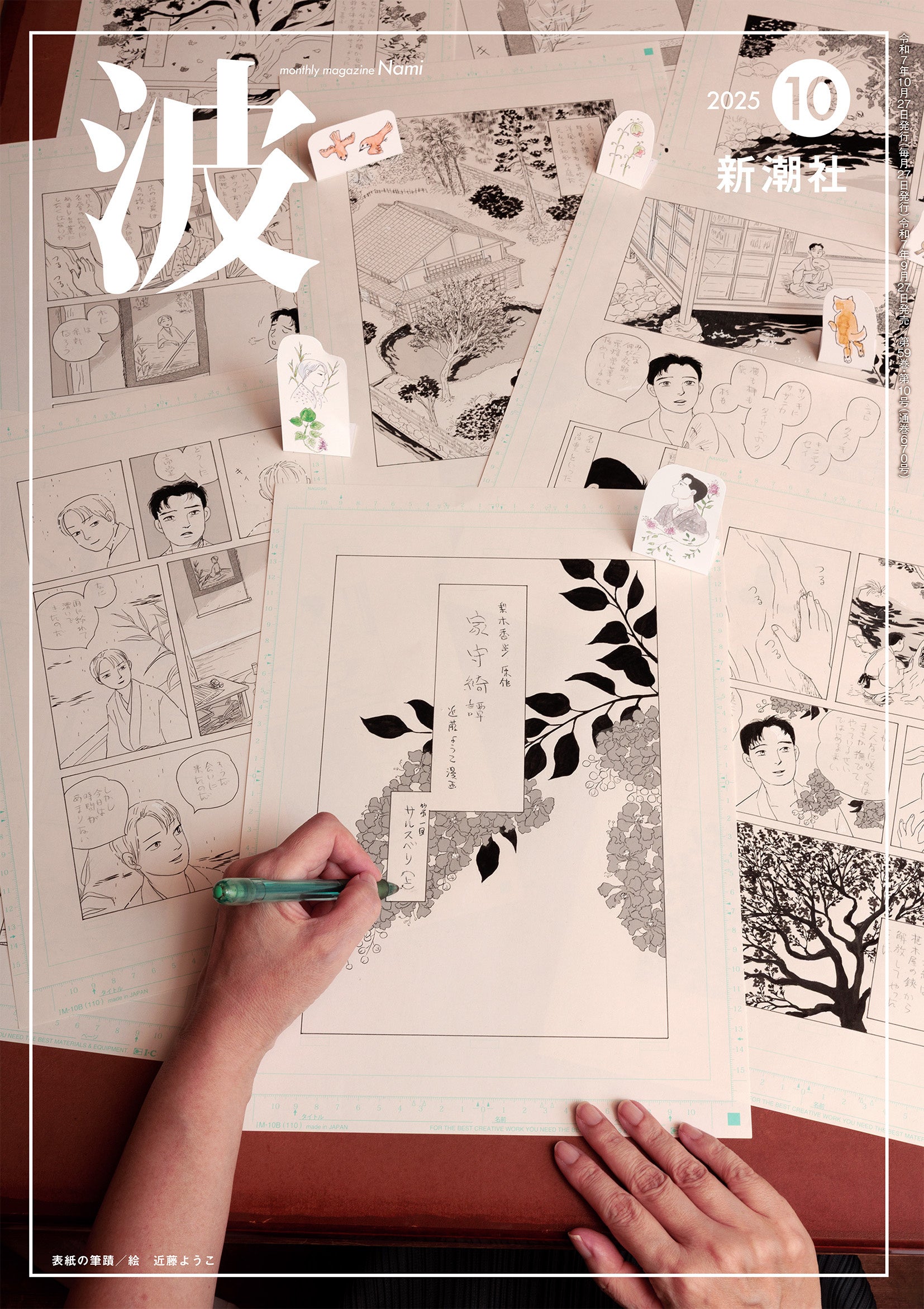 近藤さんご本人と原画による「波」10月号の表紙