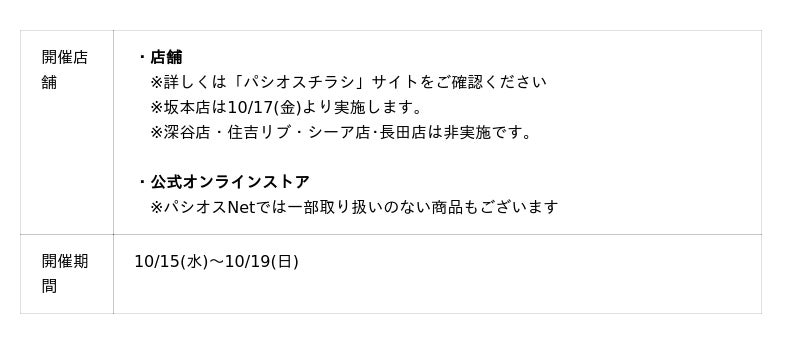 ・「パシオス公式LINE」(https://lin.ee/BbL0ZDj)