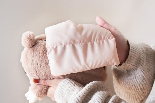 ビーズ袋を電子レンジ(500Wで30秒)で温め、ふんばるずウォーマーの背中に入れてください。