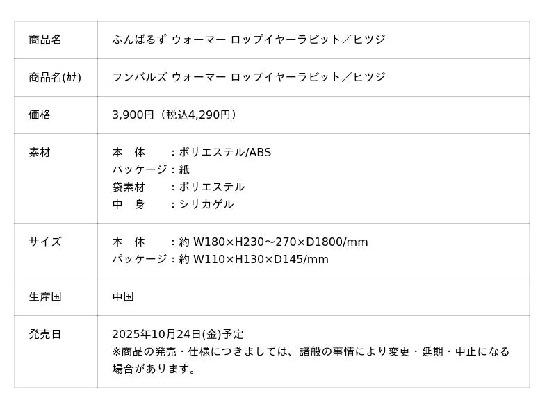 「ふんばるず」の冬の定番商品である、おなかを温めながら猫背なあなたをサポートする『ふんばるずウォーマー』の新ラインナップ「ロップイヤーラビット」と、昨年からリニューアルした「ヒツジ」を、2025年10月24日(金)より発売します。