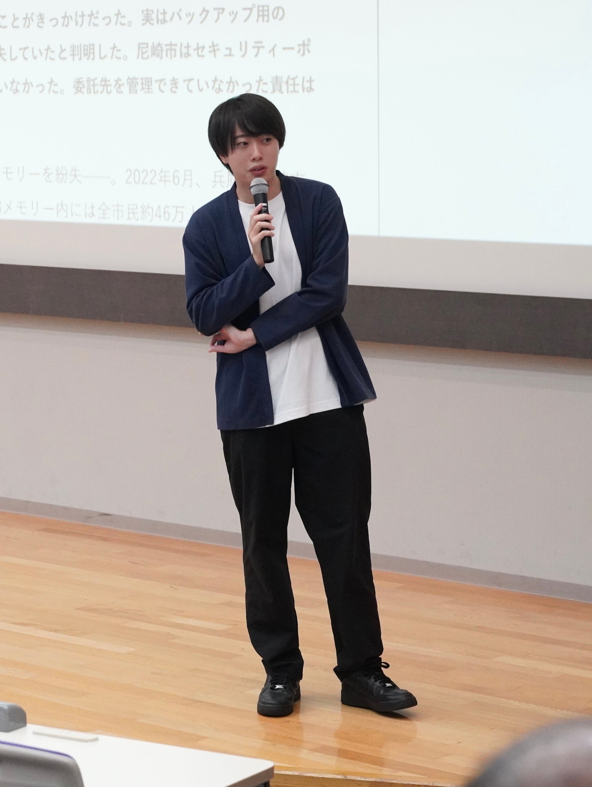 SNSの基礎知識から、情報流出の可能性やリスクについて具体的な事例も交えながら解説しました。学生にとっても身近なSNSに潜む危険性を学んでいただきました。