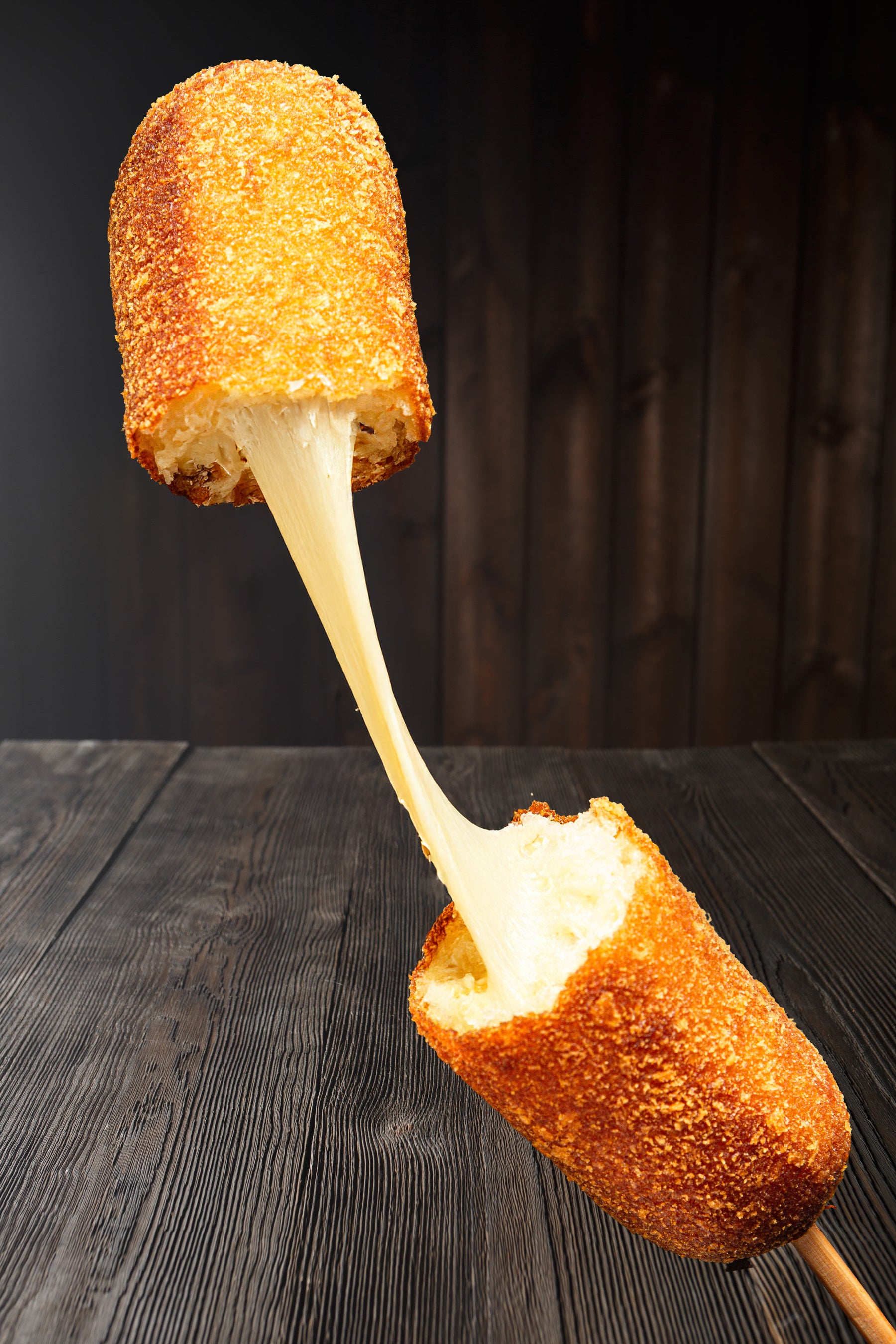 チーズハットク:韓国屋台で大人気。中にチーズが入ったおやつ