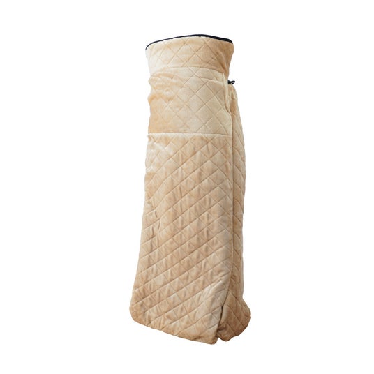 使い方は寝袋のように足を入れて下半身をすっぽり覆って使用。