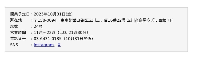 株式会社マッシュフードラボ(代表取締役社長:近藤広幸、本社:東京都千代田区)は、国産蕎麦粉・最高の鰹節を使った本格仕様の蕎麦を気軽に使いたくなるカフェスタイルで提供する、これまでの蕎麦店には見られなかった新しい感覚の新ブランド「SOBA FUTATSU(ソバ フタツ、以下FUTATSU)」を2025年10月31日(金) 、玉川高島屋S・C 西館1Fにグランドオープンします。