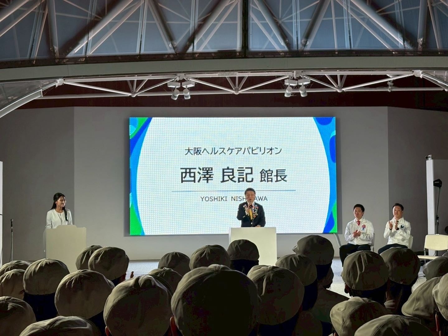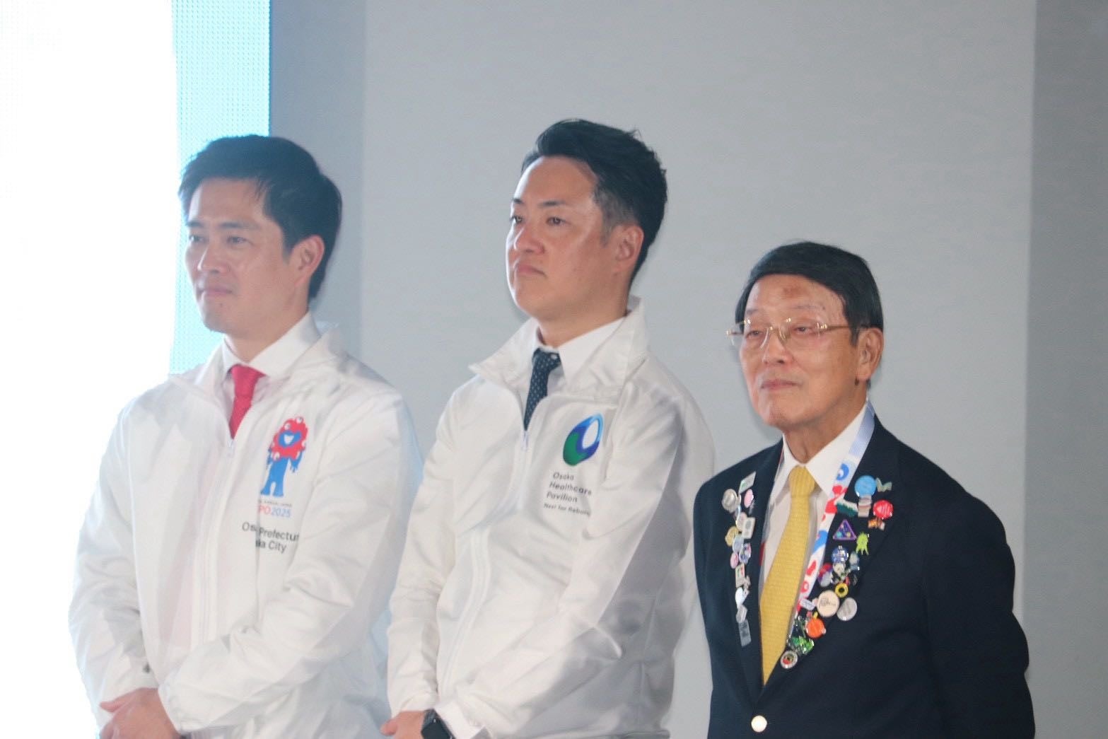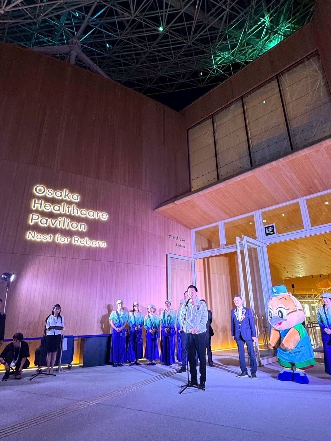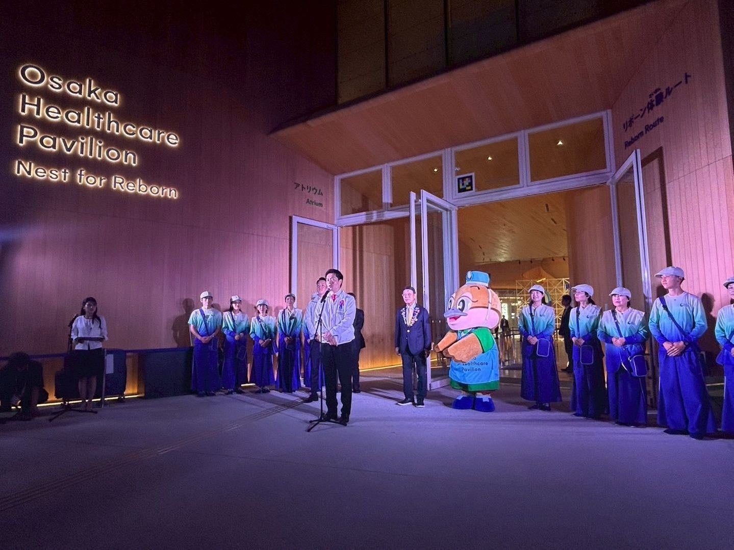 セレモニーには、吉村 洋文 大阪府知事、横山 英幸 大阪市長、西澤 良記 大阪ヘルスケアパビリオン館長もご出席され、大阪ヘルスケアパビリオン関係者、スタッフの皆様に向けて、4月13日から始まった大阪・関西万博の会期終了までに至る感謝の想いが伝えられました。