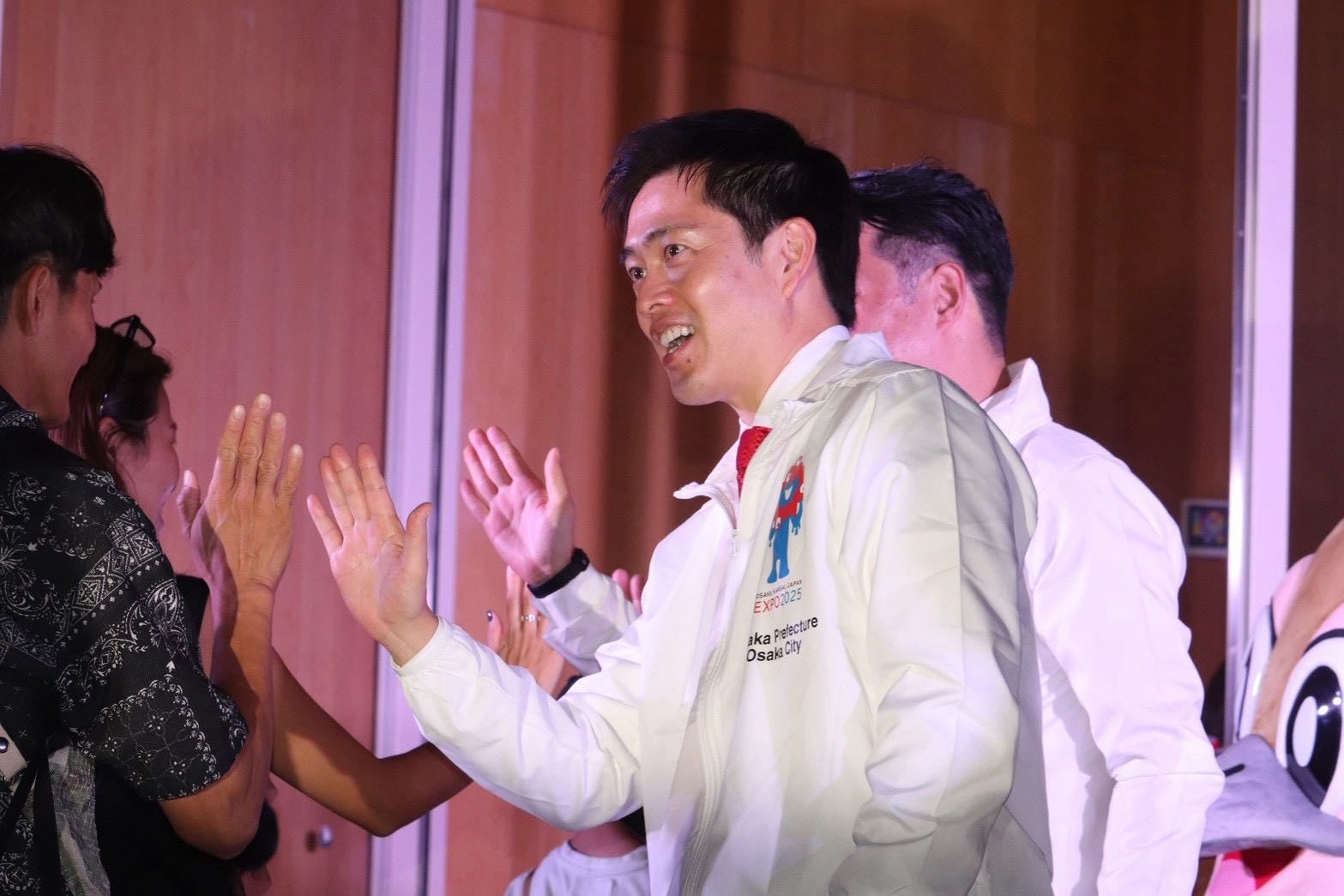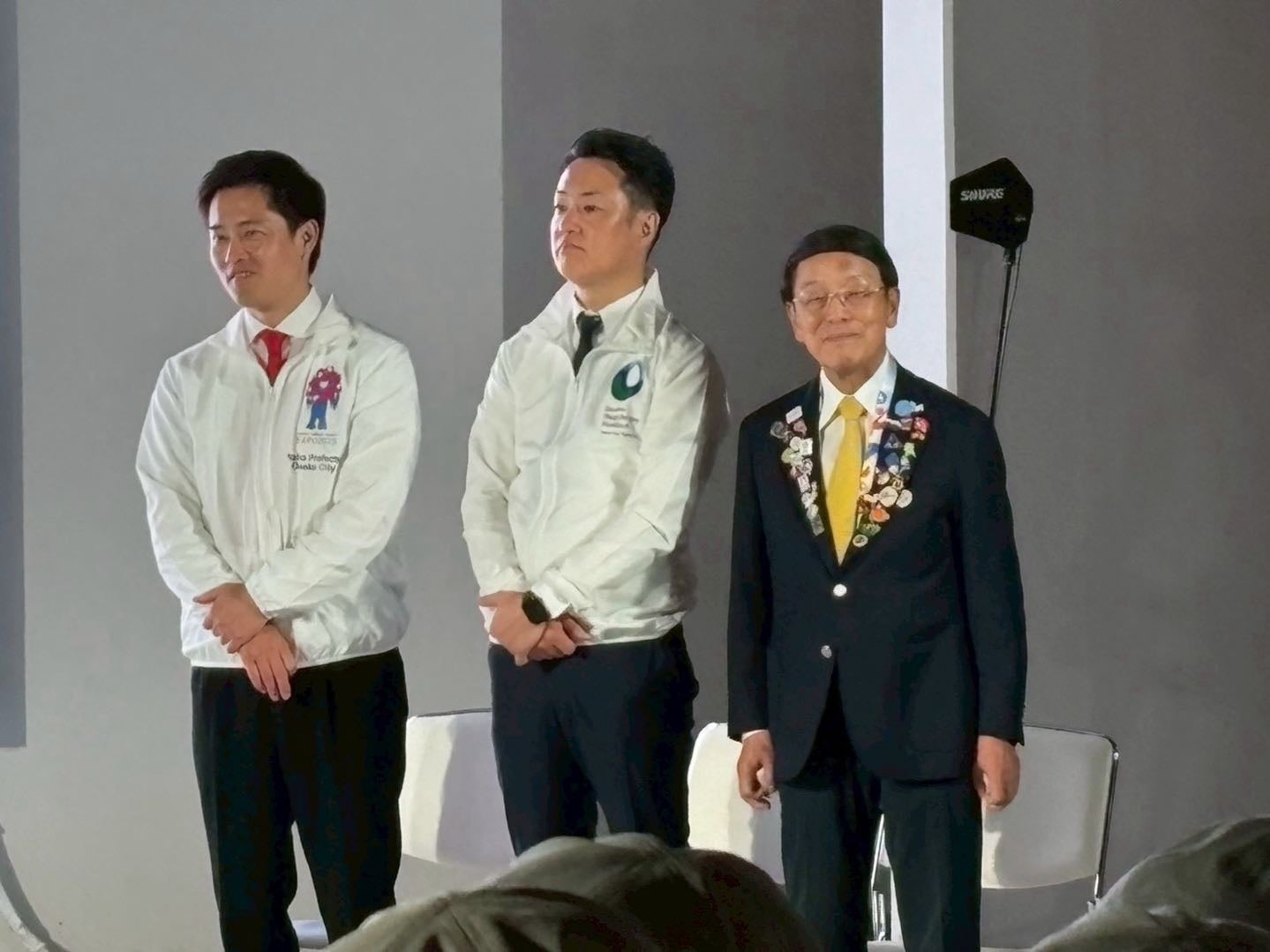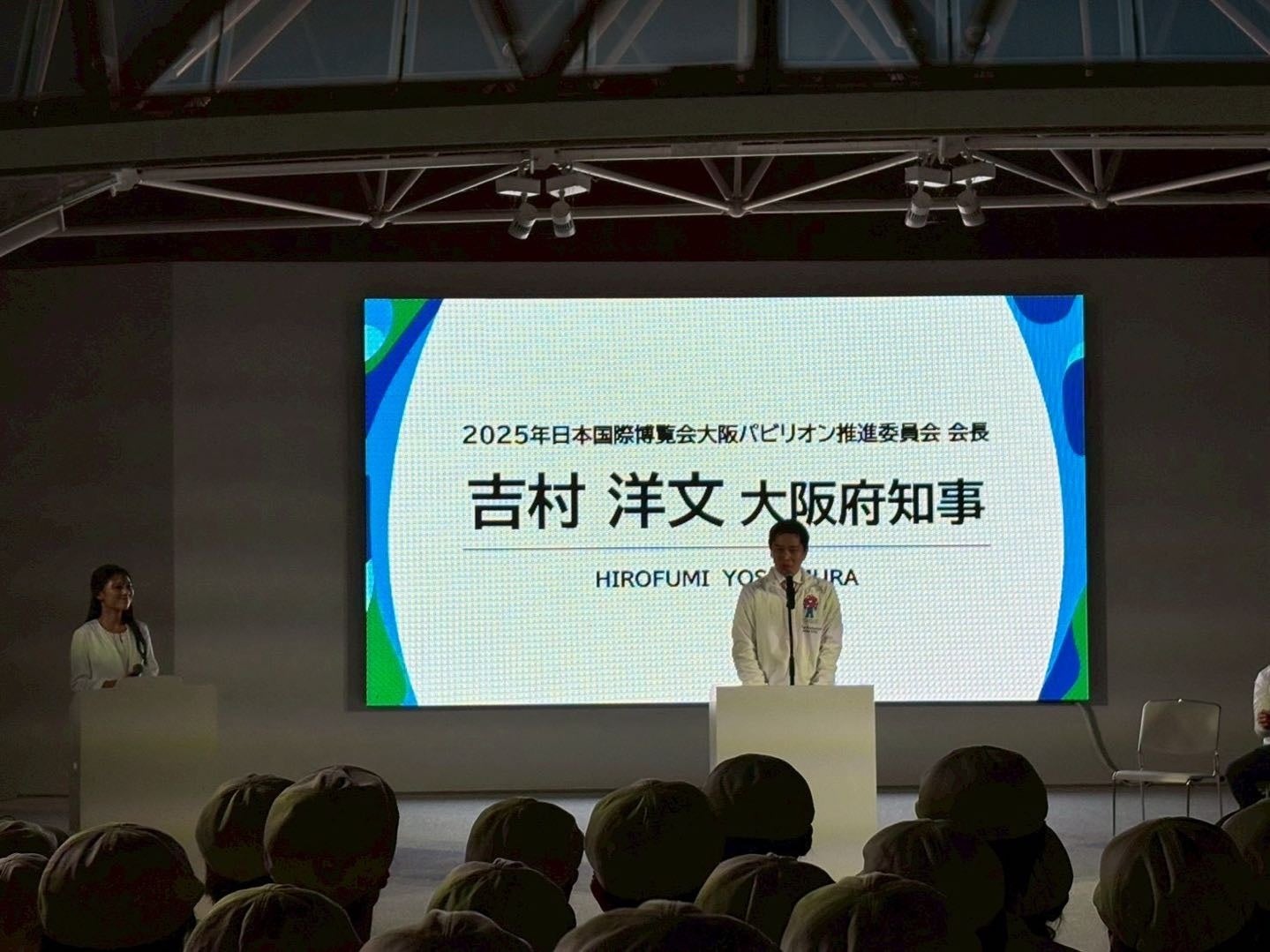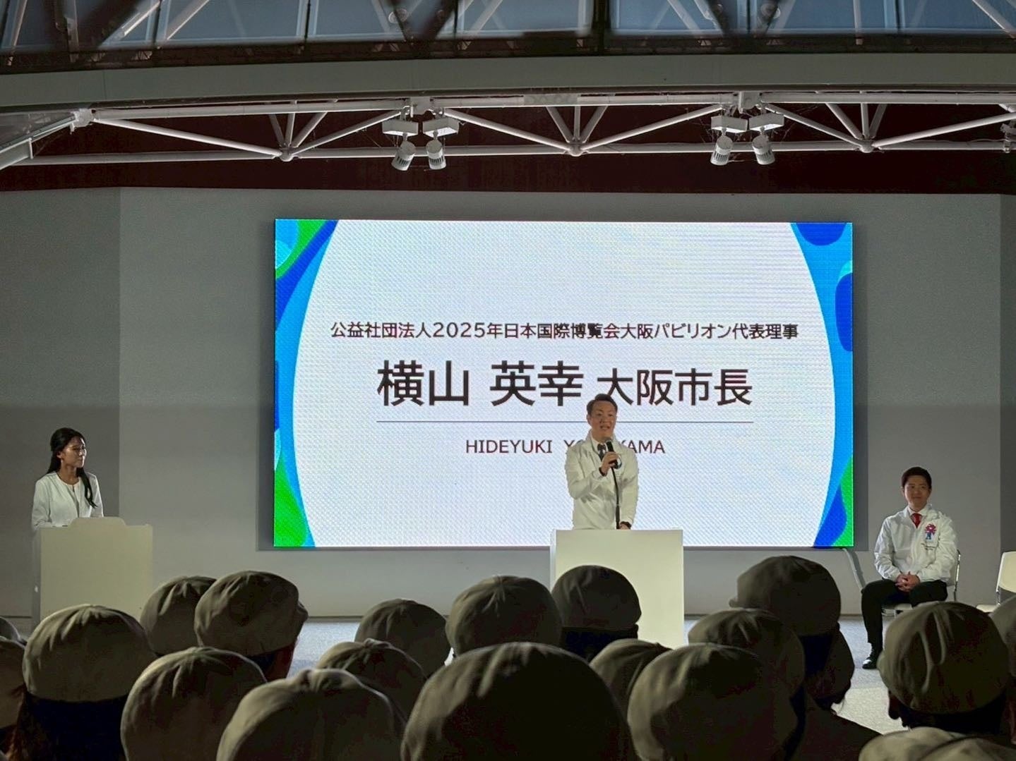 セレモニーには、吉村 洋文 大阪府知事、横山 英幸 大阪市長、西澤 良記 大阪ヘルスケアパビリオン館長もご出席され、大阪ヘルスケアパビリオン関係者、スタッフの皆様に向けて、4月13日から始まった大阪・関西万博の会期終了までに至る感謝の想いが伝えられました。
