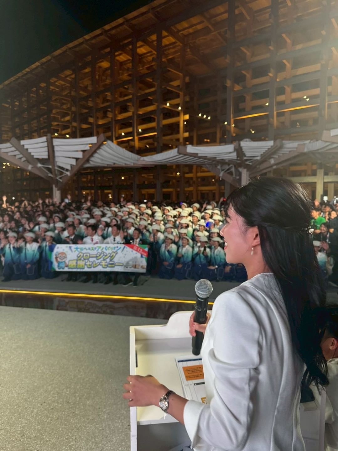 大阪ヘルスケアパビリオンで大阪府福祉部様や数々の企業様などが企画されたイベントや、当イベント来場者500万人記念セレモニーなどで総合司会を務めてきた石塚理奈は「万博は終わってほしくない!と思っても終わってしまうんですね。また明日も明後日も万博に行きたい!と少し残念な気持ちにはなりますが、約半年間で知り合ったたくさんの方々がFC大阪を知ってくださる、好きになってくださる事がとても多く、嬉しい日々の連続でした。私は総合司会として万博にたくさん関わらせていただきました。世界中の方と言語が違っても一言の会話から友達になれる喜び。そして、サッカーは世界共通の言語であり、世界中の人や国を繋ぎ、発展させ、共に平和な世界を一緒に創る大きな力を持っていることを万博で改めて実感しました。大阪ヘルスケアパビリオンでの思い出を胸に、FC大阪の活動をこれからも続けて、大阪を世界へ発信する一人としてこれからも頑張ります!万博、ありがとうございました!大好きです!」と、約半年間での数々の大阪・関西万博、大阪ヘルスケアパビリオンでの事業参加と万博への想いを振り返りました。