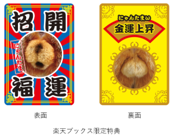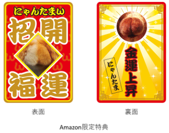 お財布に入れて持ち歩けば、幸運を呼び込む「にゃんたまお守りカード」。オモテは「開運招福」、ウラは「金運上昇」のダブル仕様!