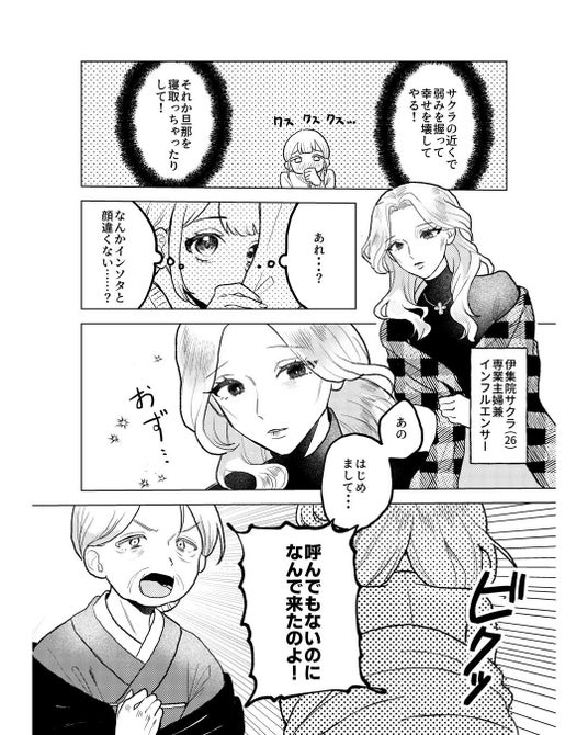 高校時代に壮絶ないじめを受けた主人公・アイは、整形と偽名を使い、自分をいじめていたサクラの家に潜入。ところが、復讐相手のサクラはすでに夫のモラハラと姑の嫌がらせで不幸のどん底にいた…! 復讐心に揺れるアイが目にする、この家の“裏の顔”とは――!?