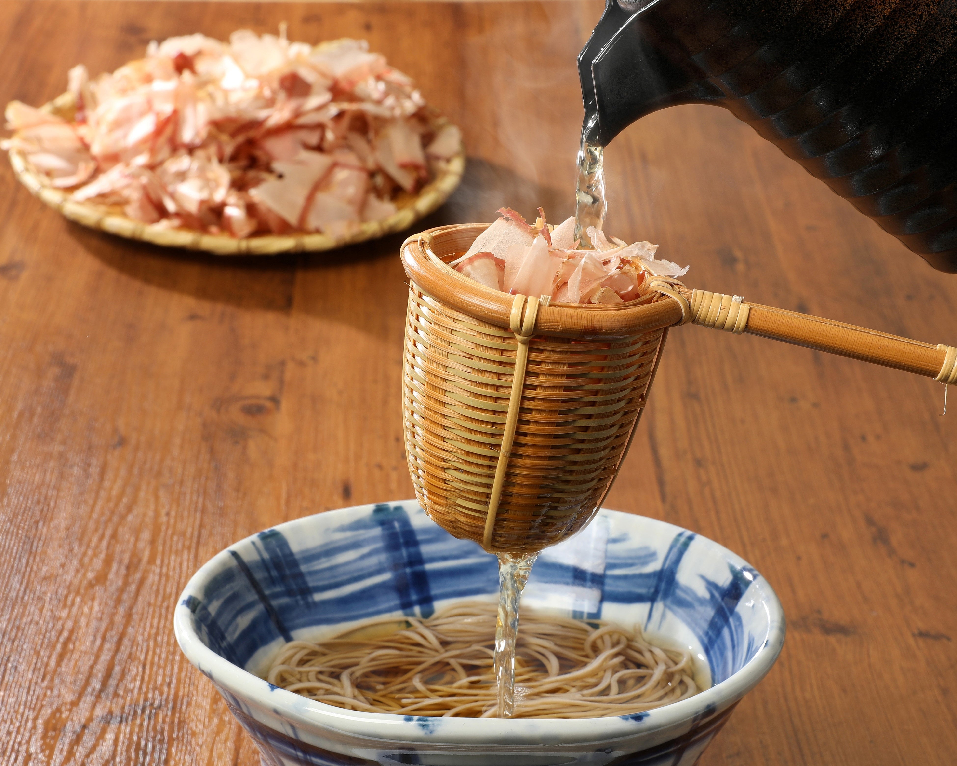 召し上がる直前に本枯節で追いがつおをして仕上げ、立ち上る香りと豊かな旨みを存分に感じていただけます。