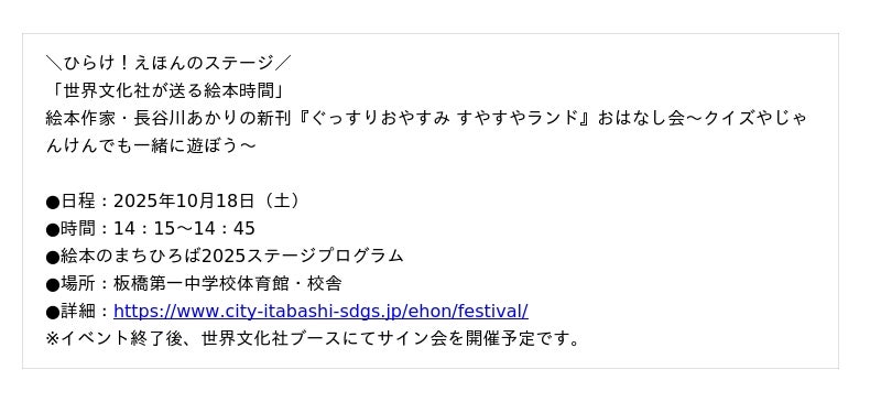 ◆ 「板橋・絵本のまちひろば2025」\ひらけ!えほんのステージ/でイベント開催!