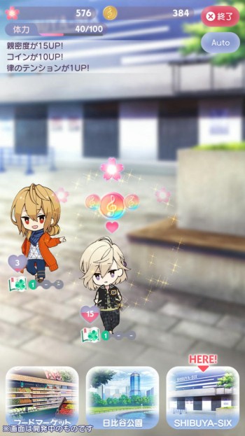 ガチャで手に入れたカードを編成すると、そのカードの彼らがオフタイムを過ごしている場所に出現します。