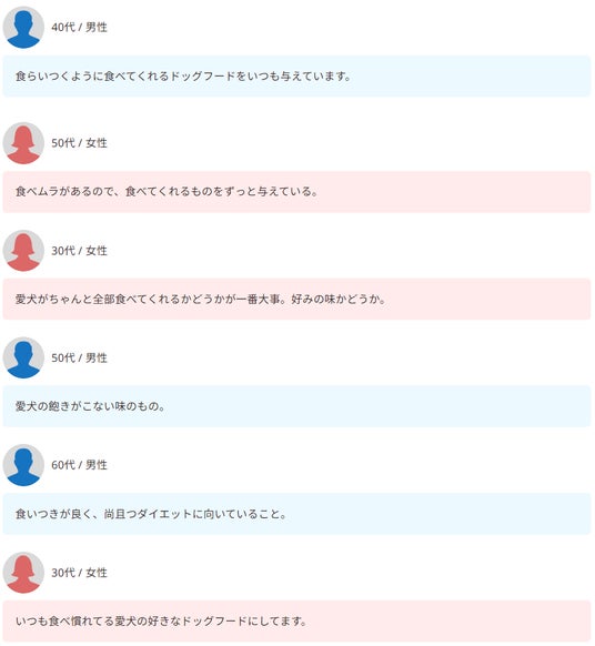 「愛犬が美味しそうに食べてくれること」を重視する飼い主さんの声が多く寄せられました。