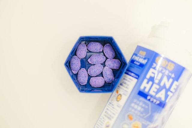 お湯に入れた瞬間は、かなりビビッドなカラーと少し甘さを感じる香りに戸惑いましたが、1分ほど経ってツブが溶け切ったタイミングで入ると、香りも和らいでいい感じに。