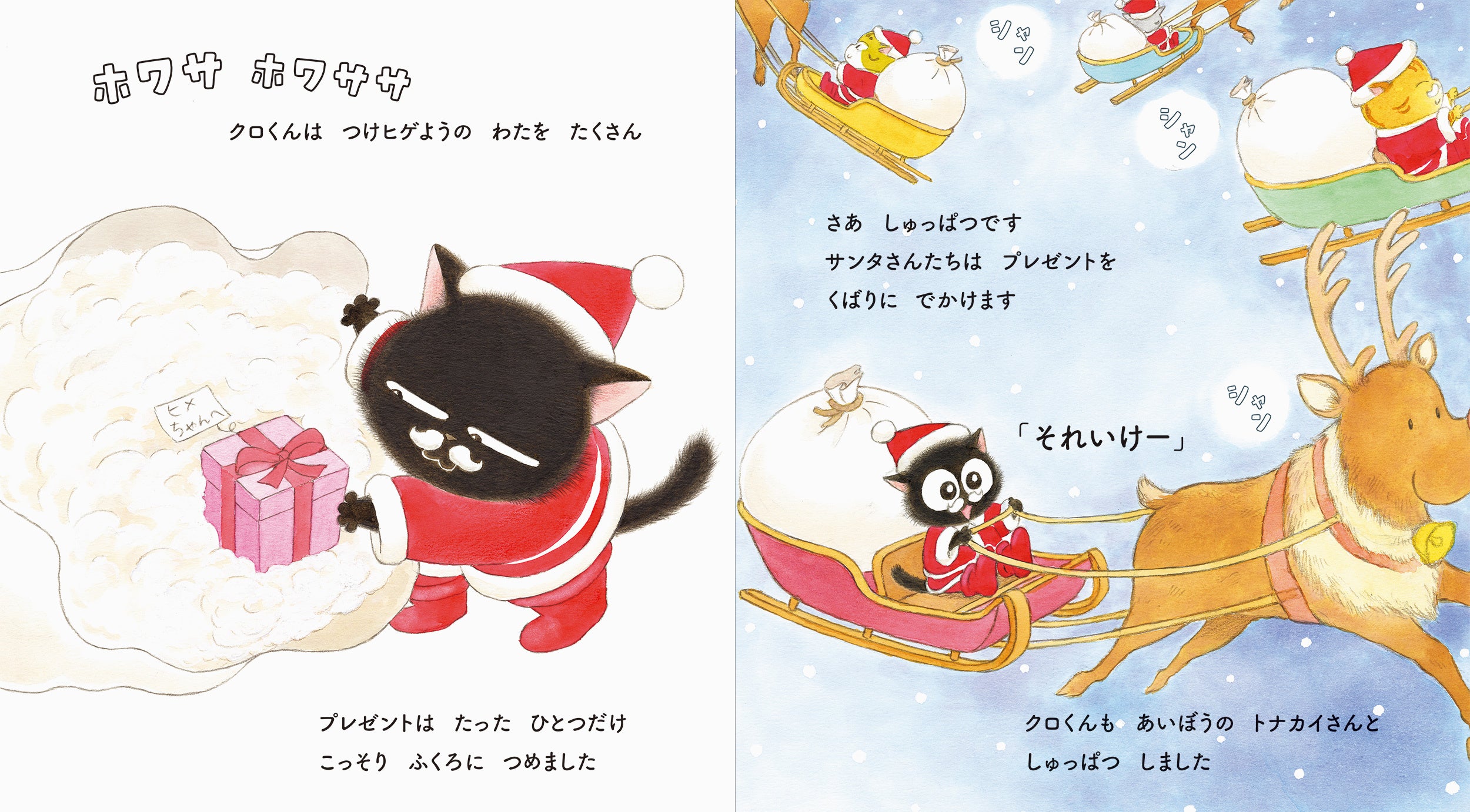 なまけもののネコ、クロが選んだ職業はサンタクロース。クリスマス前の準備がいやで、ずるをしてさぼってばかりいたら、クリスマス当日に大変なことに……。働き始めたばかりのクロが、失敗を通じてみんなにはげまされながら成長していく物語。