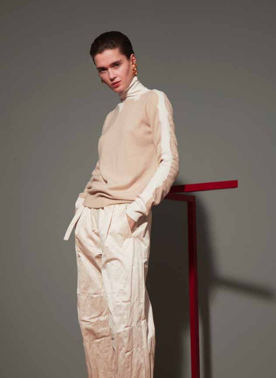 シームレスなニットは柔らかで肌触りよく、上質な着心地を体験できます。